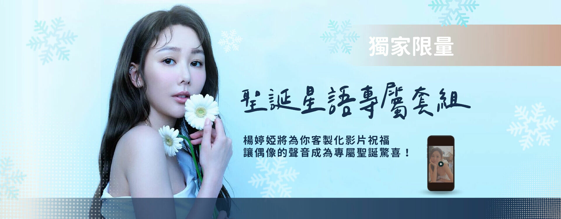 僅 10 組的稀缺權益!紫爺 & 黃書庭將為您與同伴錄製專屬線上合體問候影片,可定制祝福內容(如生日、節日祝賀),讓兩位歌手的溫暖聲音成為你們的聖誕獨家驚喜!